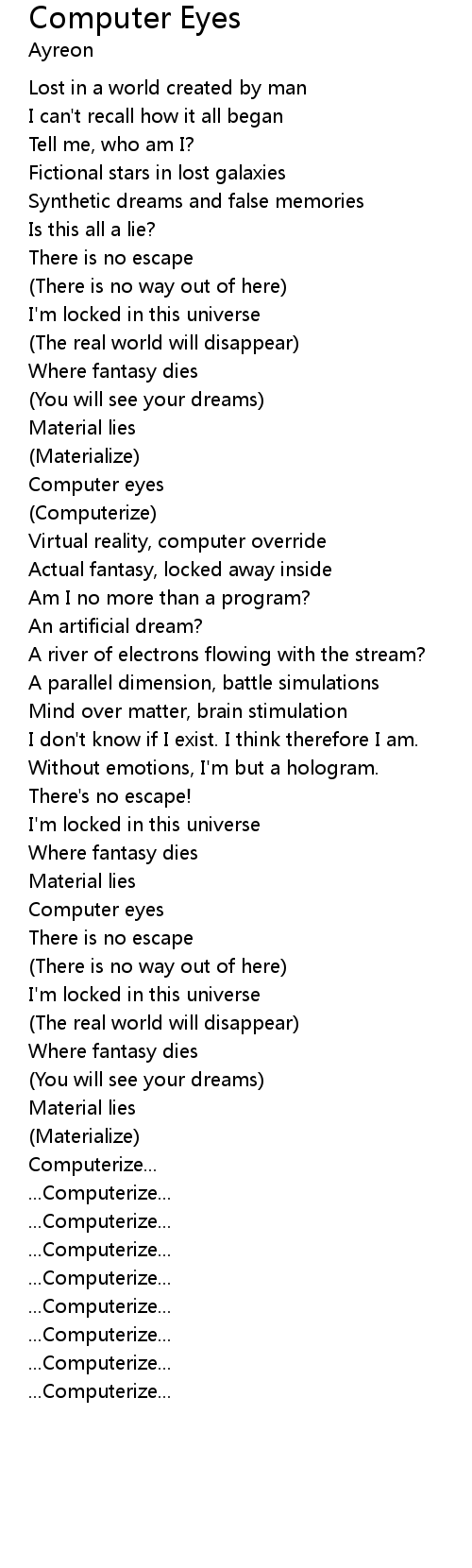 Computer Eyes Lyrics