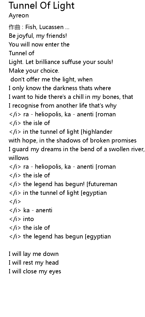 | Avalon! egyptian i in the tunnel of light highlander don' t tempt my heart with hope, in the shadows of broken promises | |