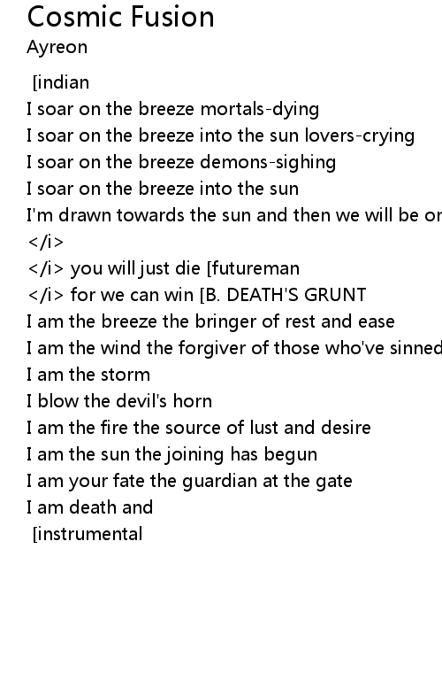 It's all a lie [roman]</i> you will just die [futureman]</i> so don't give in [roman]</i> for we can win [B. DEATH'S GRUNT] [death] |