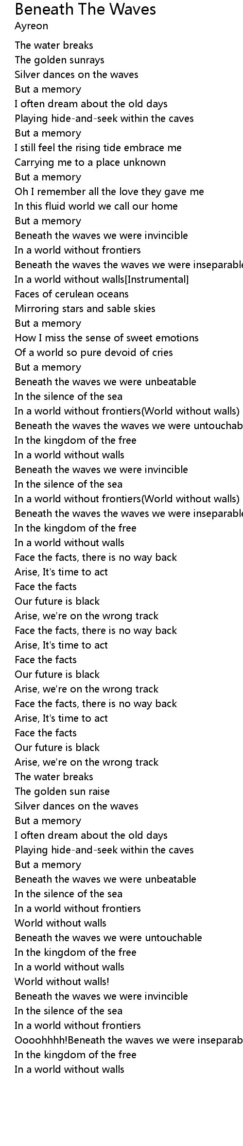 | Oooohhhh!Beneath the waves we were inseparable | |