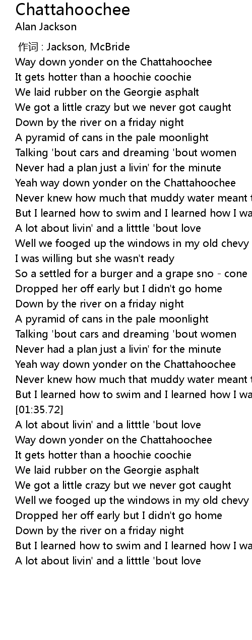 | [00:39.40] | Yeah way down yonder on the Chattahoochee |