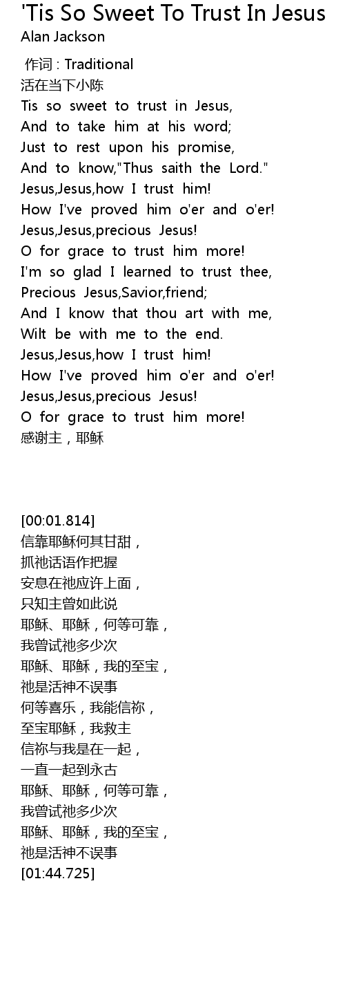 | [00:34.647] | Jesus,Jesus,how I trust him! |