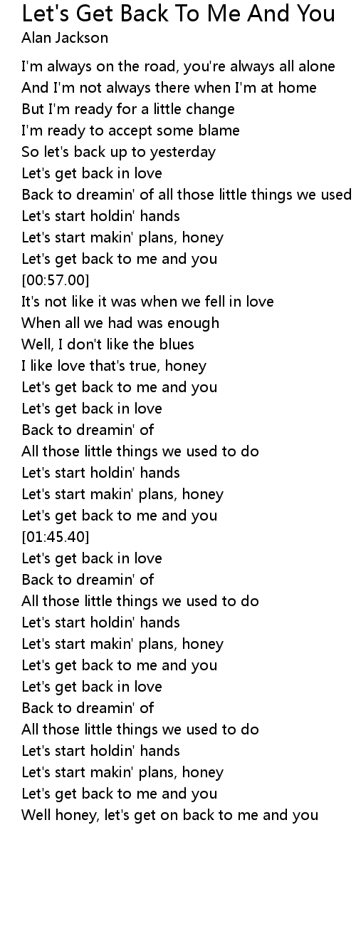 Let's get back to me and you |