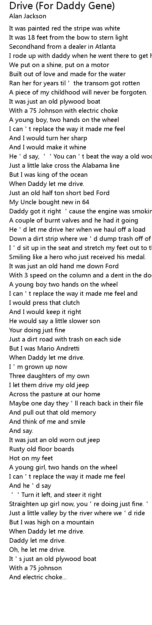 | [01:35.390] | He d let me drive her when we haul off a load |