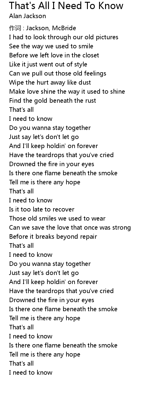 | Song | That's All I Need To Know |