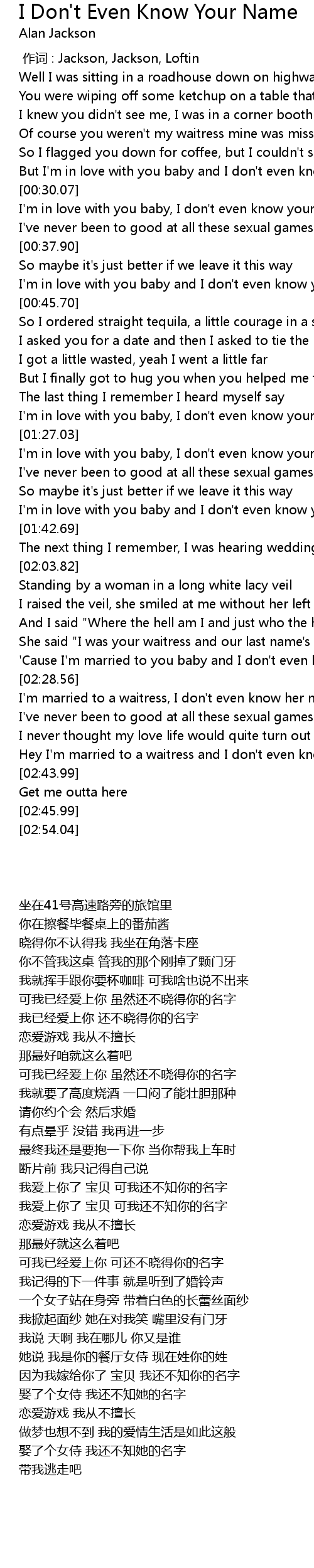 | [02:40.74] | Hey I' m married to a waitress and I don' t even know her name |