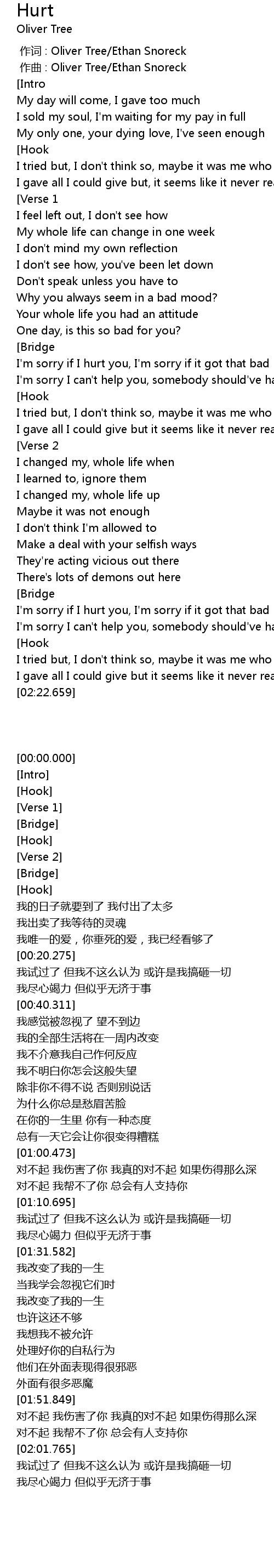 | [00:00.000] | zuo ci : Oliver Tree Ethan Snoreck |