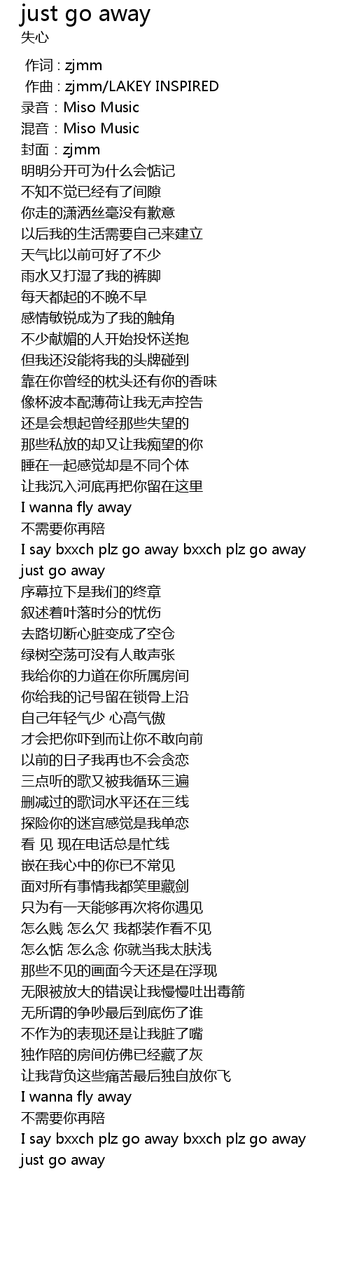 | [02:44.082] | I say bxxch plz go away bxxch plz go away |