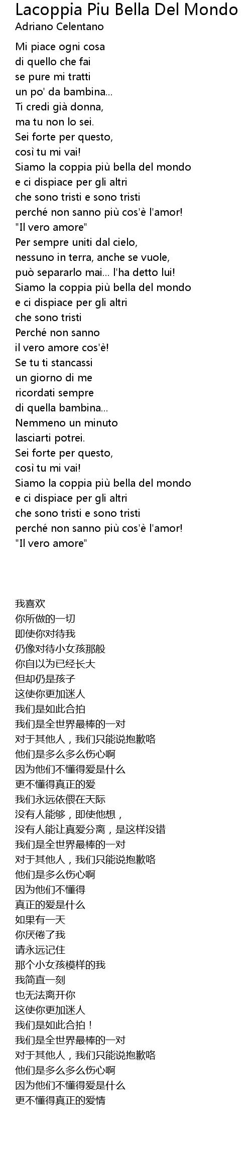 | [00:34.47] | Siamo la coppia piu bella del mondo |