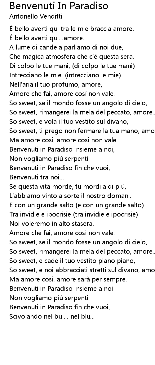 | Song | Benvenuti In Paradiso |