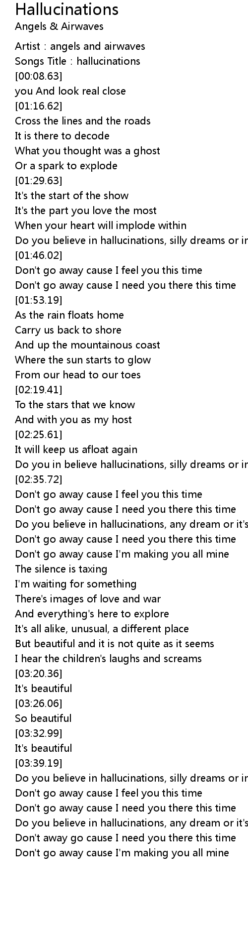 | [00:04.94] | Songs Title:hallucinations |