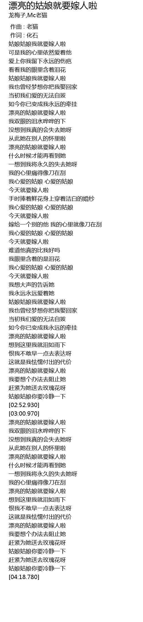| [03:01.810] | piào liàng de gū niáng jiù yào jià rén la |