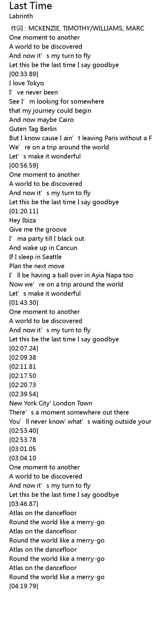 | [04:00.22] | Round the world like a merrygo |