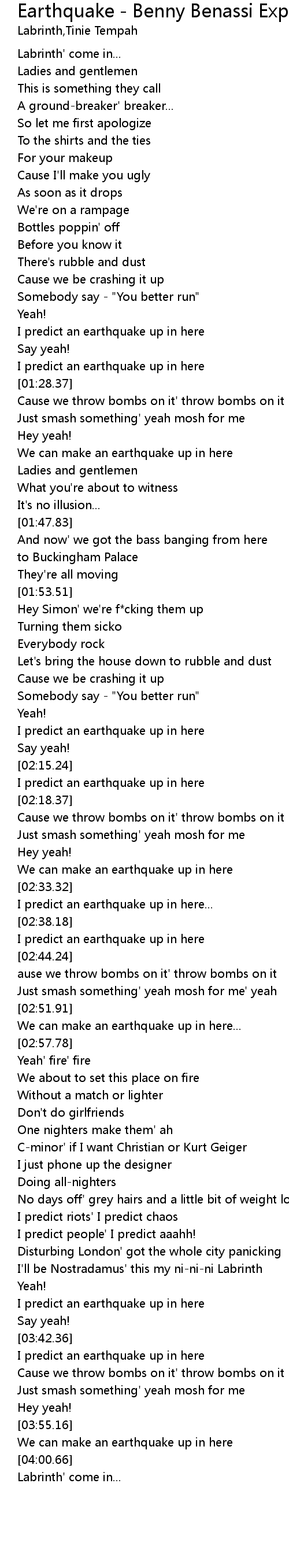 Earthquake - Benny Benassi Explicit Remix Lyrics