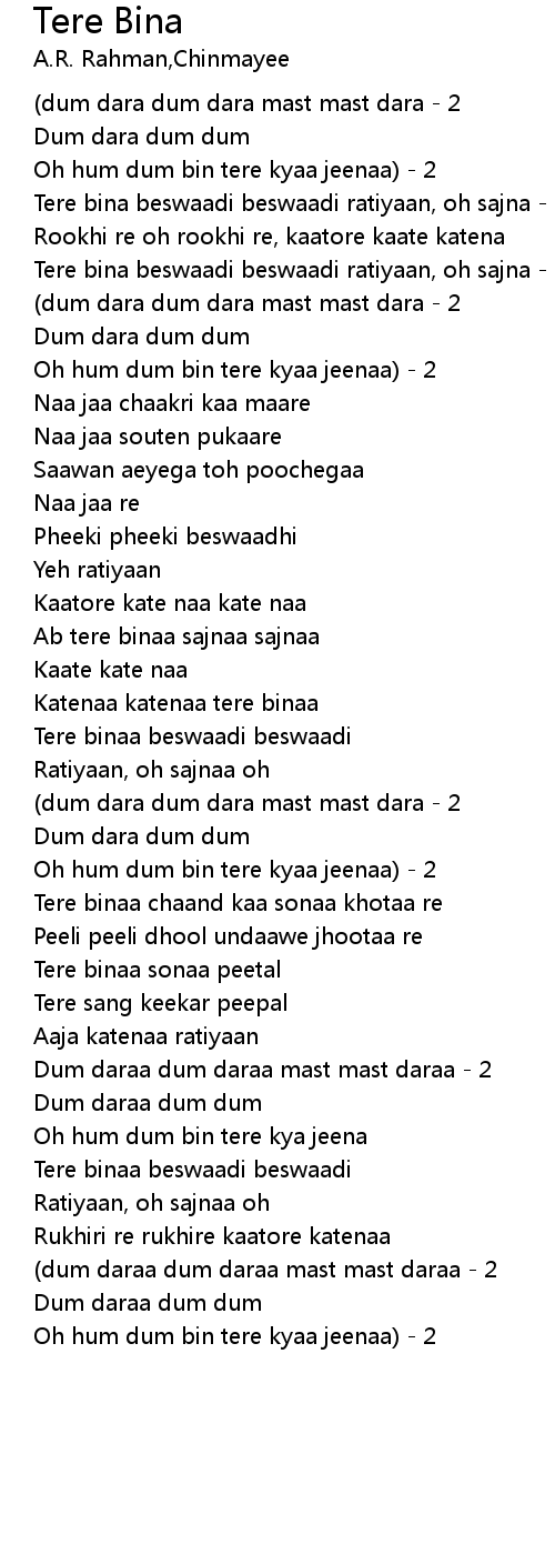 | Oh hum dum bin tere kyaa jeenaa) - 2 | |