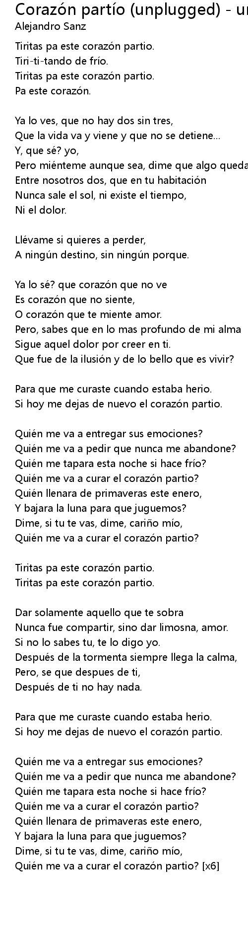 | Si hoy me dejas de nuevo el corazo n partio. | |