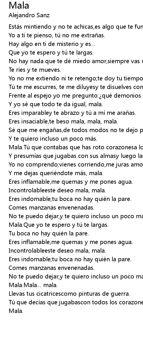 | Y me dejas querie ndote ma s, mala. | |