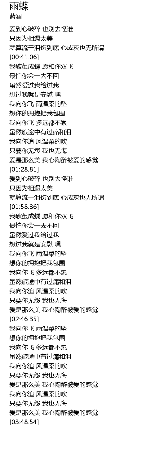 | [00:42.78] | 我破茧成蝶 愿和你双飞 |
