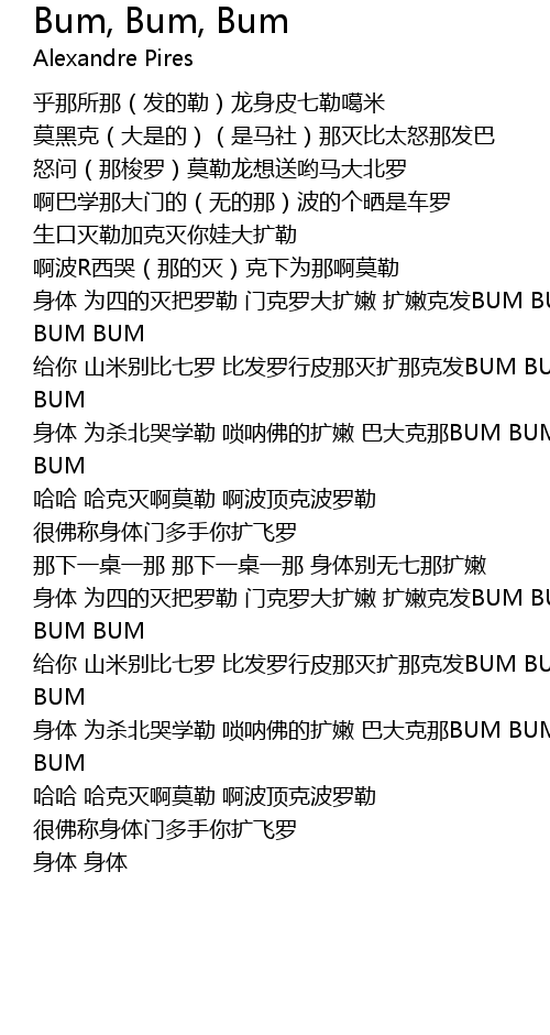| [02:32.41] | 给你 山米别比七罗 比发罗行皮那灭扩那克发BUM BUM BUM BUM |