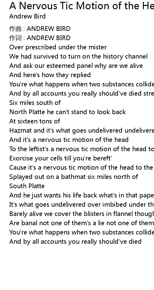 | Song | A Nervous Tic Motion of the Head to the Left |