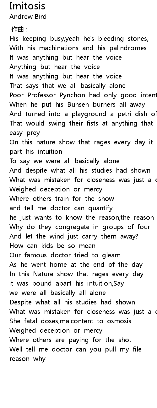 | [01:19.942] | What was mistaken for closeness was just a case for mitosis |