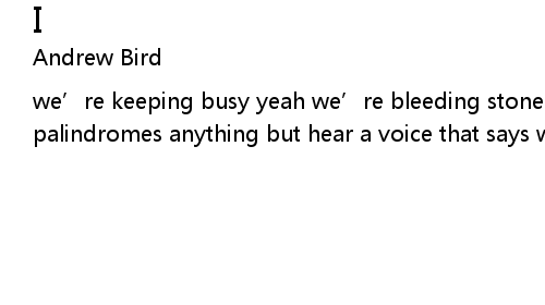 | we’re keeping busy yeah we’re bleeding stones with our machinations and our palindromes anything but hear a voice that says we’re basically alone |