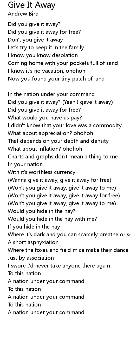 (Won't you give it away, give it away for free) |