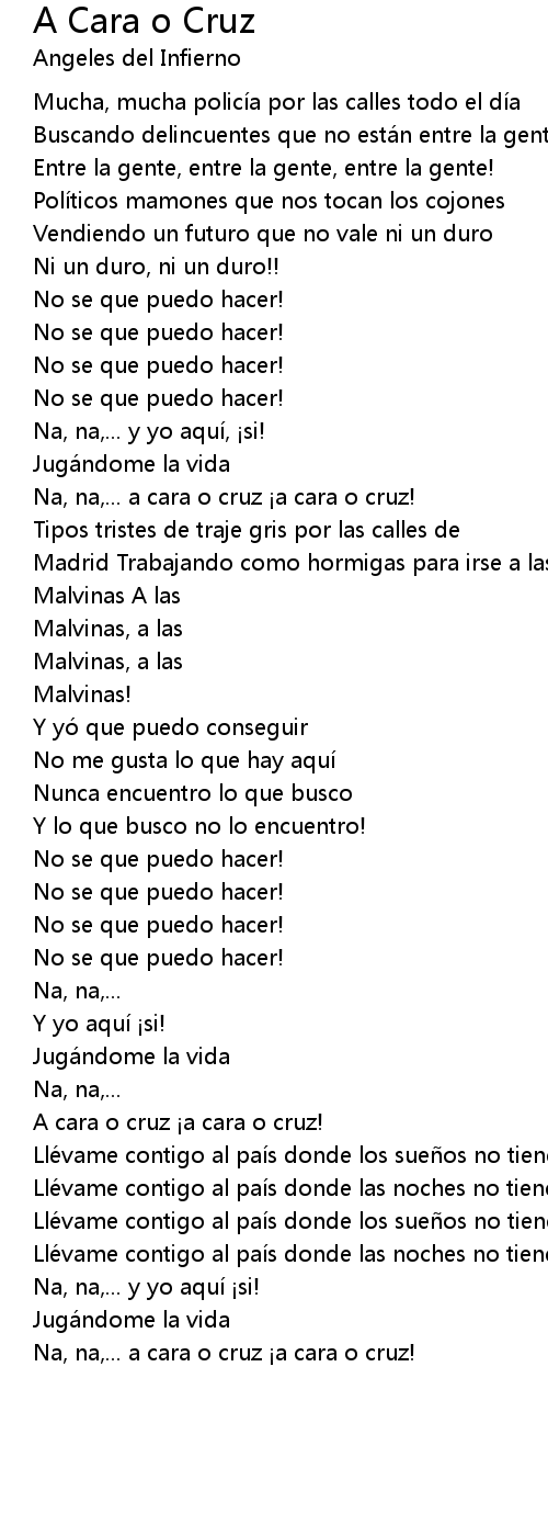 | Na, na,... a cara o cruz ¡a cara o cruz! |