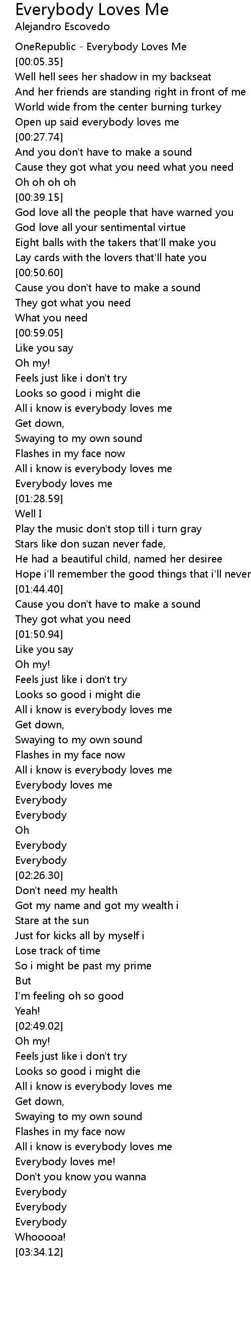 OneRepublic - Everybody Loves Me |