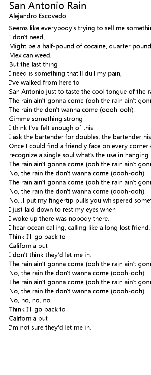 | The rain ain' t gonna come ooh the rain ain' t gonna come | |