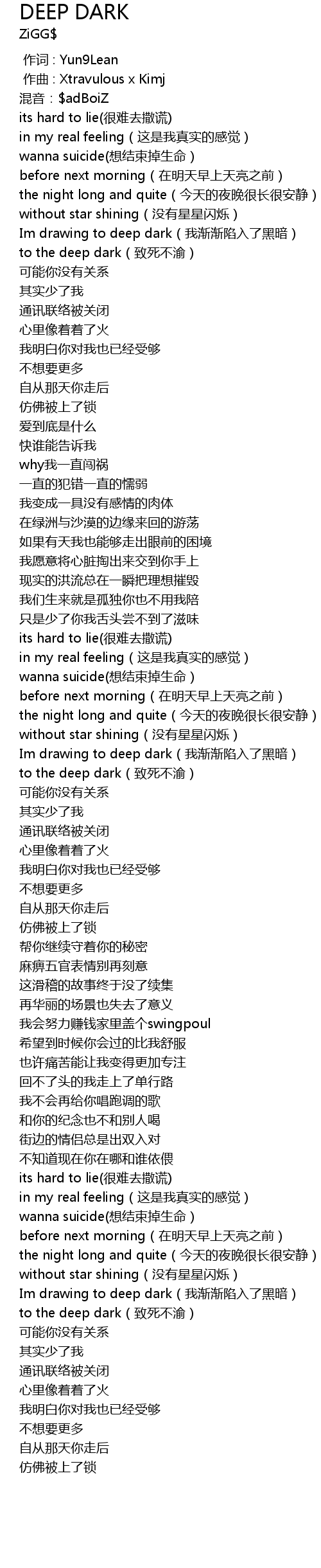 | [01:17.841] | Im drawing to deep dark(我渐渐陷入了黑暗) |