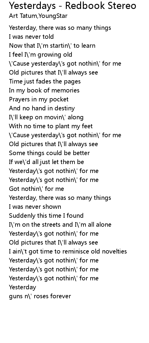 | Yesterday\'s got nothin\' for me | |