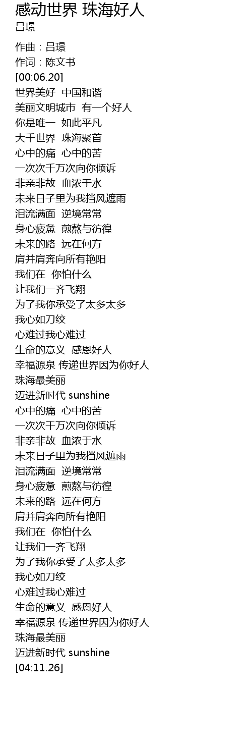 | [03:51.80] | 幸福源泉 传递世界因为你好人 |