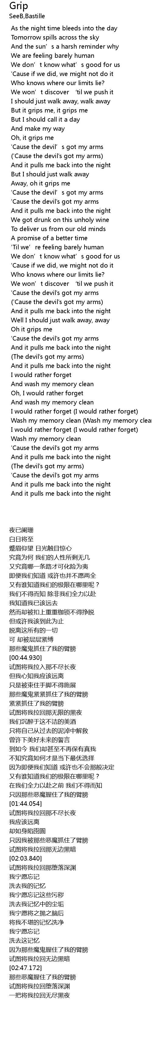 | [02:47.172] | (The devil's got my arms) |