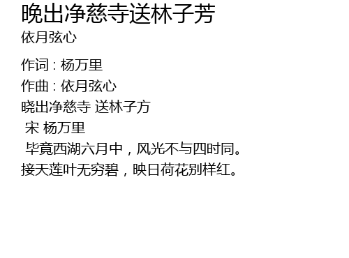 | Song | 晚出净慈寺送林子芳 |