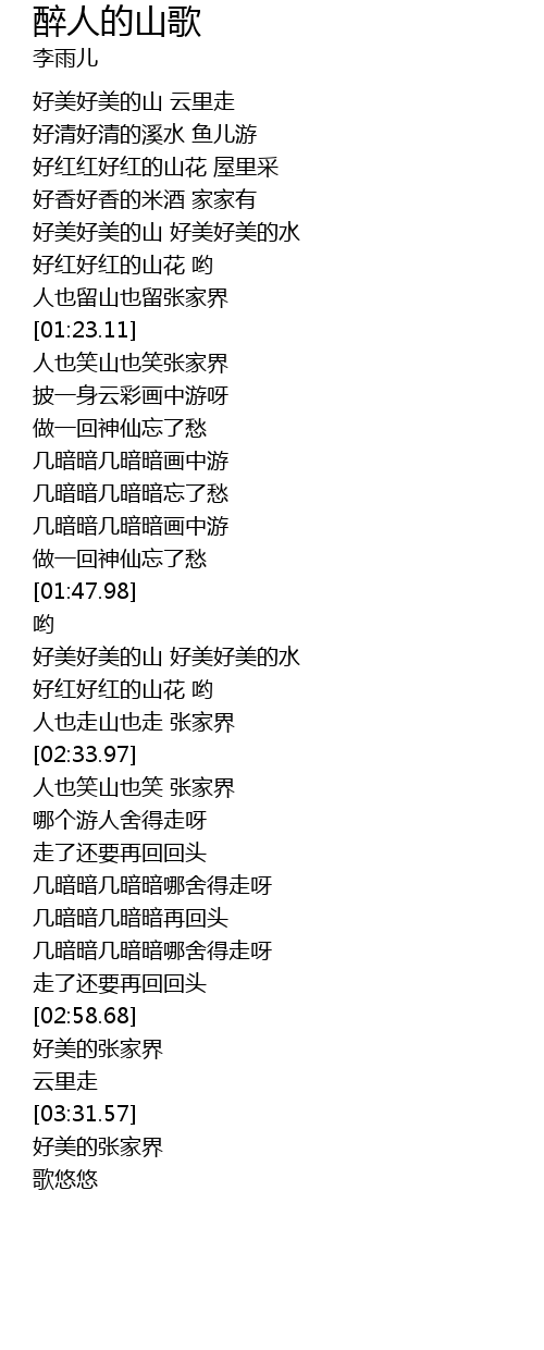 | [02:36.35] | 人也笑山也笑 张家界 |