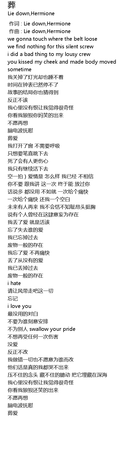 | [00:00.000] | 作词 : Lie down,Hermione |