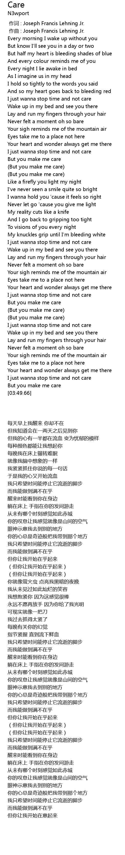 | [00:00.000] | 作词 : Joseph Francis Lehning Jr. |