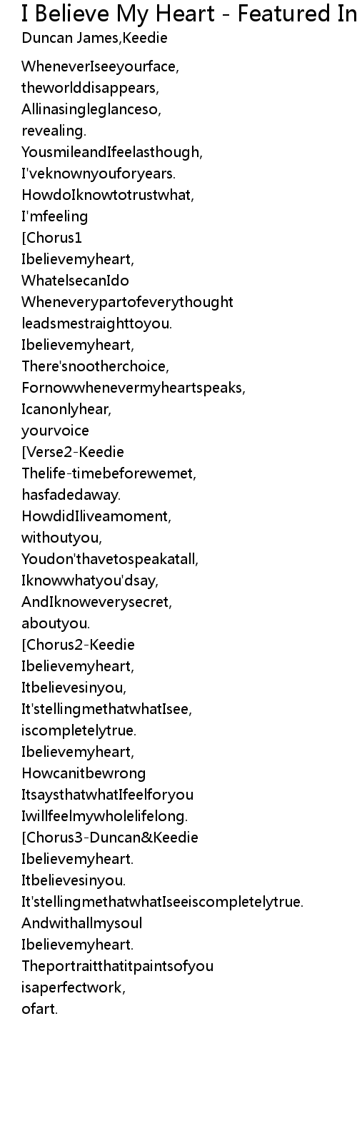 I Believe My Heart - Featured In The New Musical Woman In White Lyrics