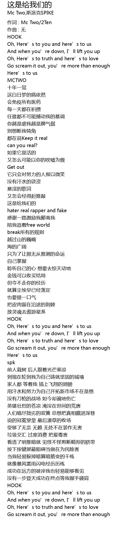 | 作词 : Mc Two/2Ten | |