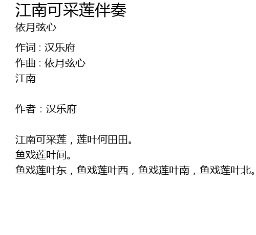| jiāng nán kě cǎi lián, lián yè hé tián tián. | |