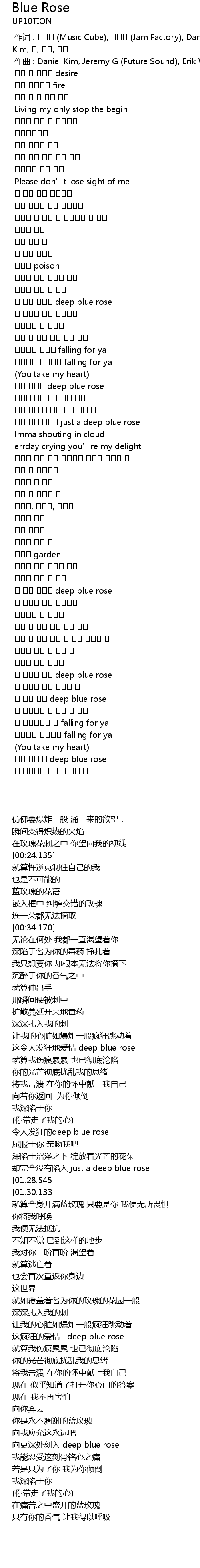 | [02:03.148] | 이 미친 사랑은 deep blue rose |