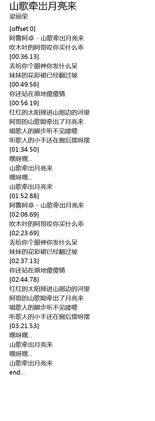 | [01:53.56] | 阿鲁阿卓 - 山歌牵出月亮来 |