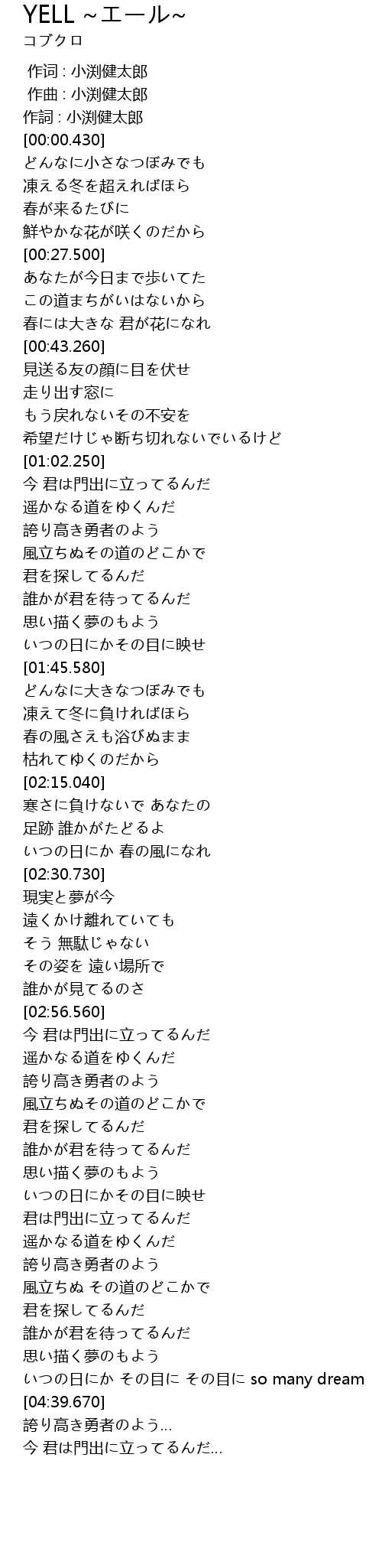 | [02:25.270] | いつの日にか 春の風になれ |