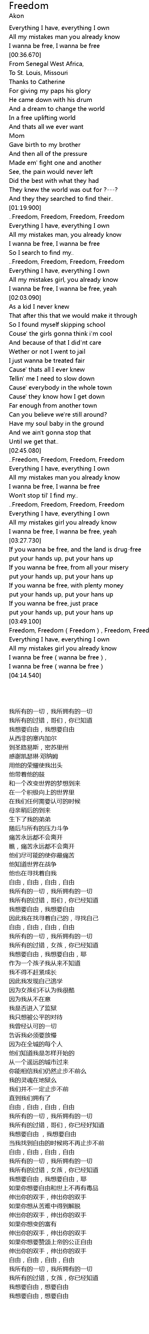 | [03:49.300] | Freedom, Freedom Freedom, Freedom, Freedom |
