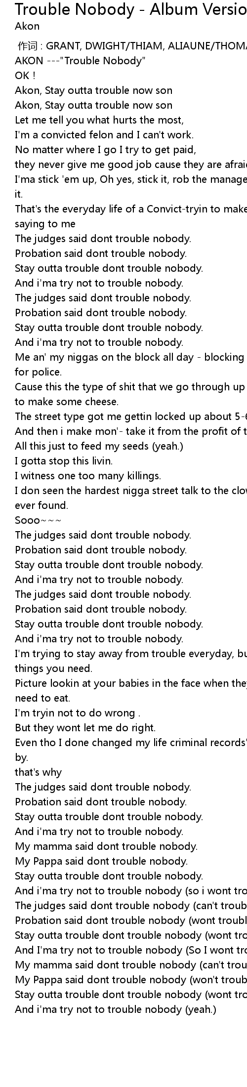 | [02:42.67] | Probation said dont trouble nobody (wont trouble nobody.) |