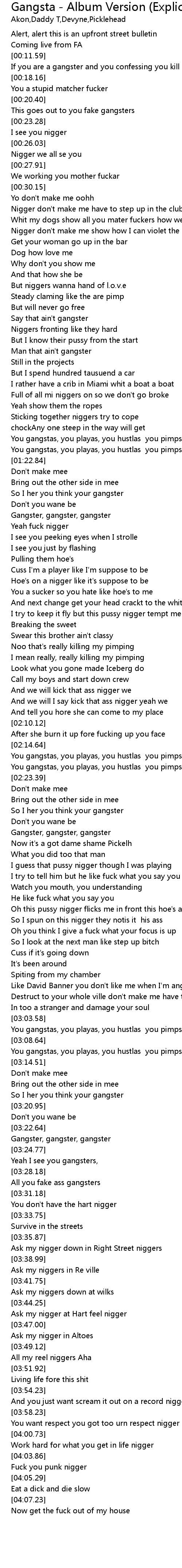 | [02:47.78] | So I spun on this nigger they notis it his ass |