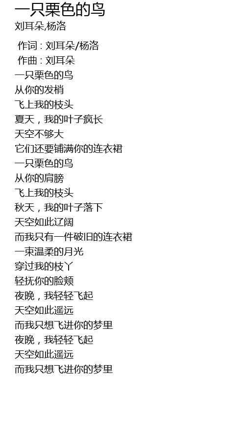| [00:21.028] | yì zhī lì sè de niǎo |
