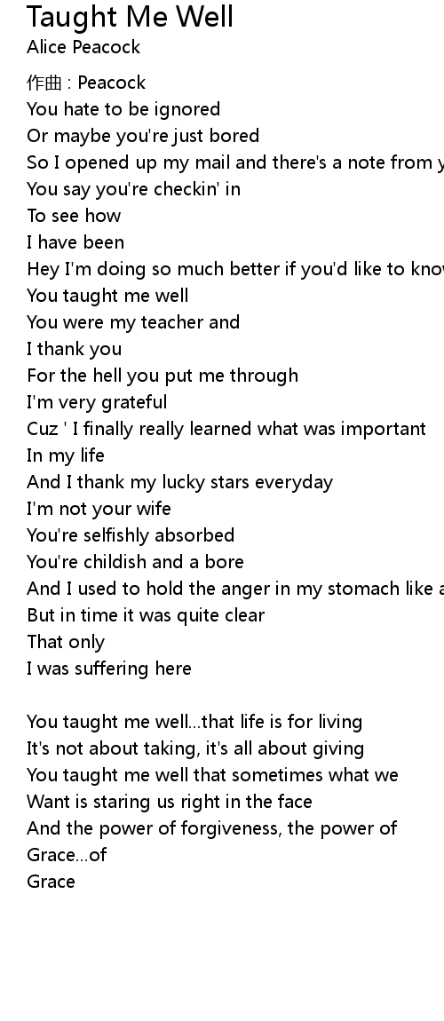 | Song | Taught Me Well |