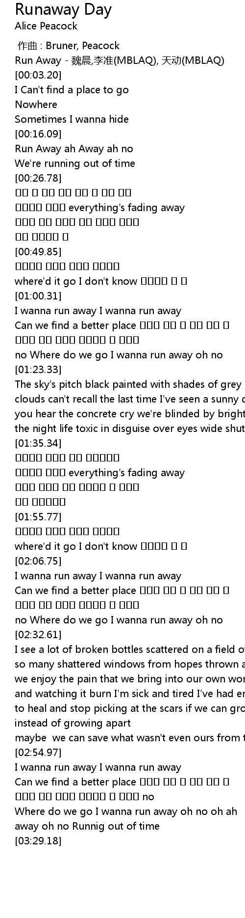 | [00:16.46] | Run Away ah Away ah no |